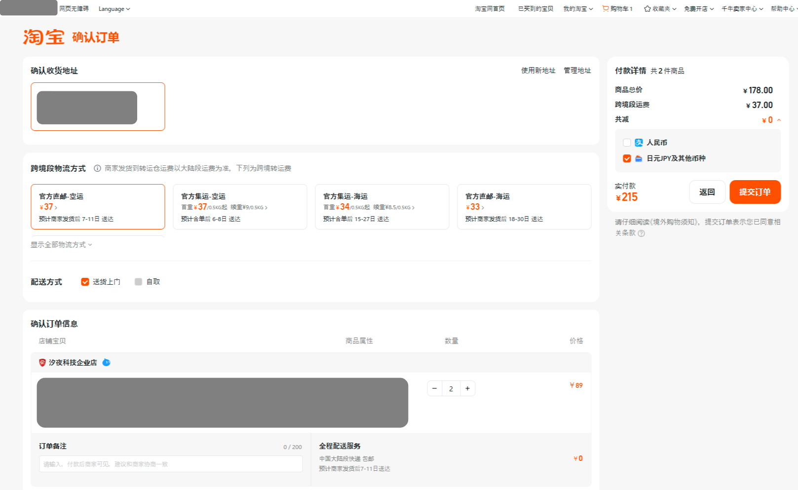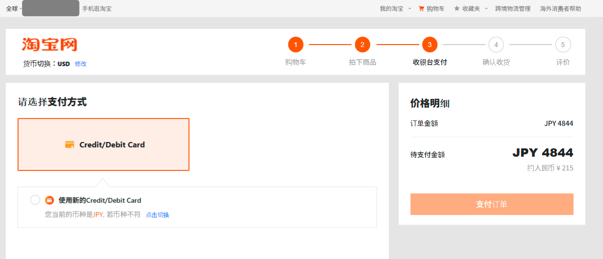 Credit って書いてあるけど決済は AliPay でした気がする(記憶ナシ)